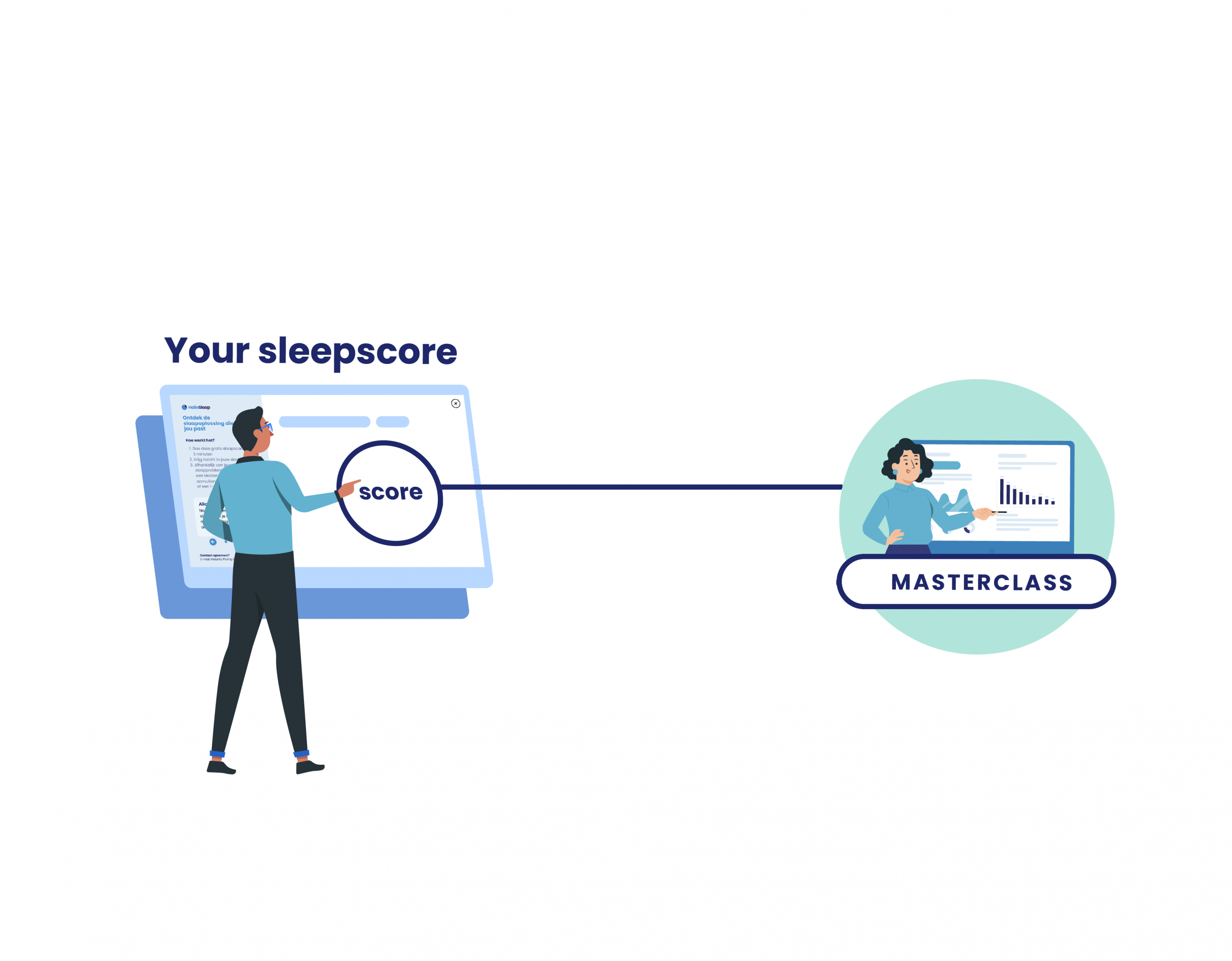 Based on the results of your sleep scan, it may be advisable for you to participate in the online masterclass. This masterclass takes place via Teams and lasts approximately 1 hour. We treat participants with the Acceptance and Commitment Therapy (ACT method). The results are impressive: 87% of the participants sleep better after one of our interventions. You will become more productive, creative, and focused, and experience less stress.